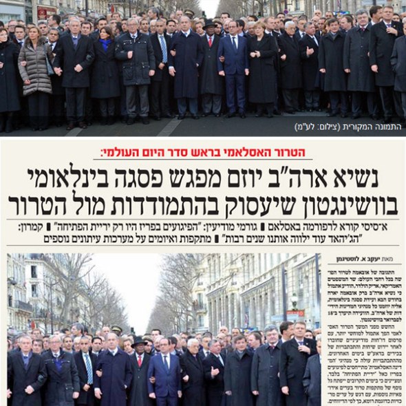 İsrail'de Haredi Yahudilere hitap eden Hamevasser gazetesi, Pariste'ki Cumhuriyet Yürüyüşü'nün haberinde görülmedik bir sansüre imza attı.